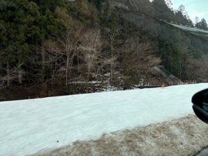 途中、道路脇や周辺が真っ白という箇所もありましたが道路には残っておらず、ひと安心。